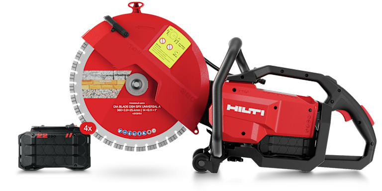 Troncatrice a batteria DSH 900-22 ATC. I valori indicati si basano sull’uso di 2×2 batterie Nuron B 22-290 e disco universale SPX A da 360 mm. Le condizioni di cantiere, come temperatura, umidità, livelli di polvere e materiali lavorati, possono influire significativamente sulla quantità massima di lavoro eseguibile con una singola carica.