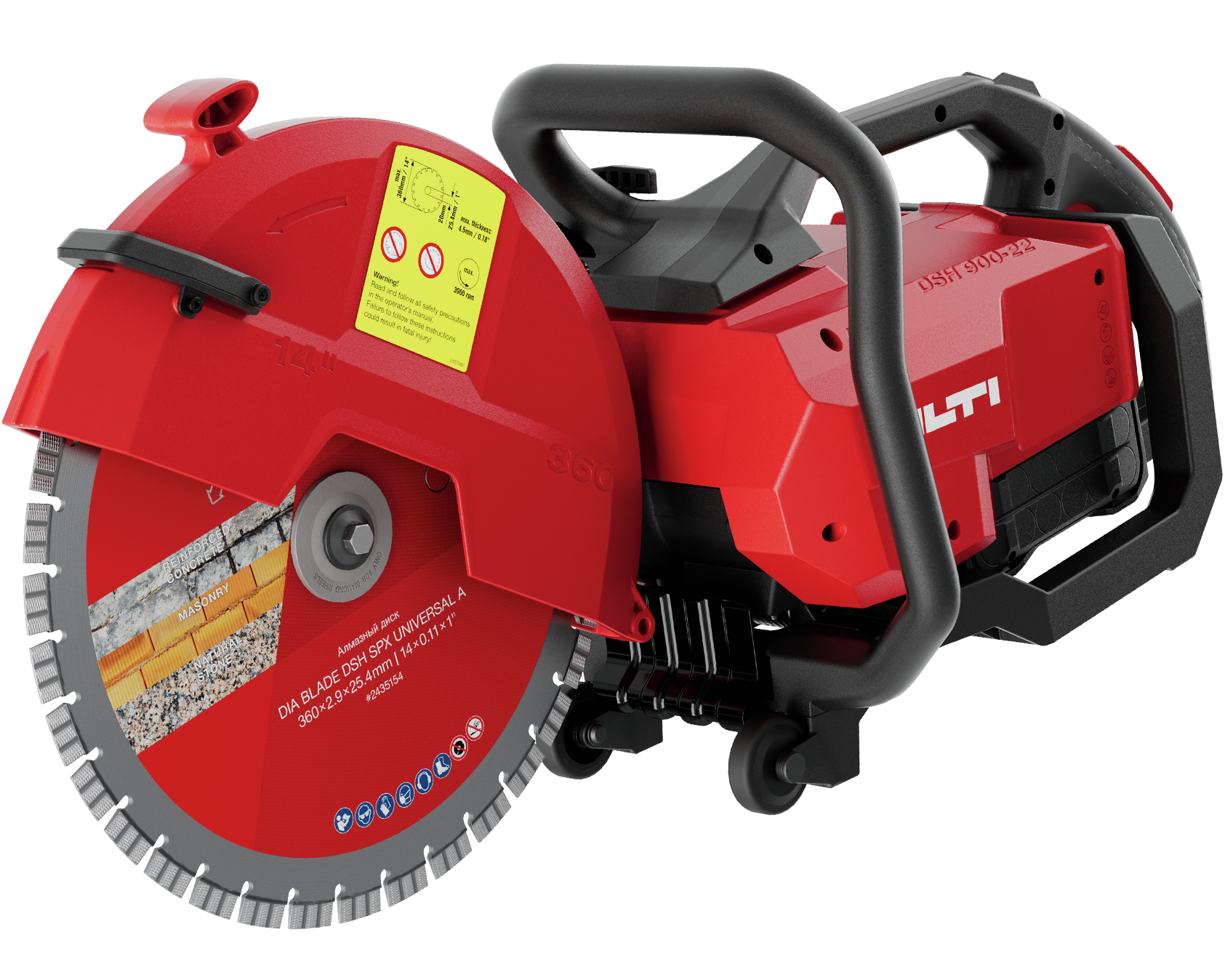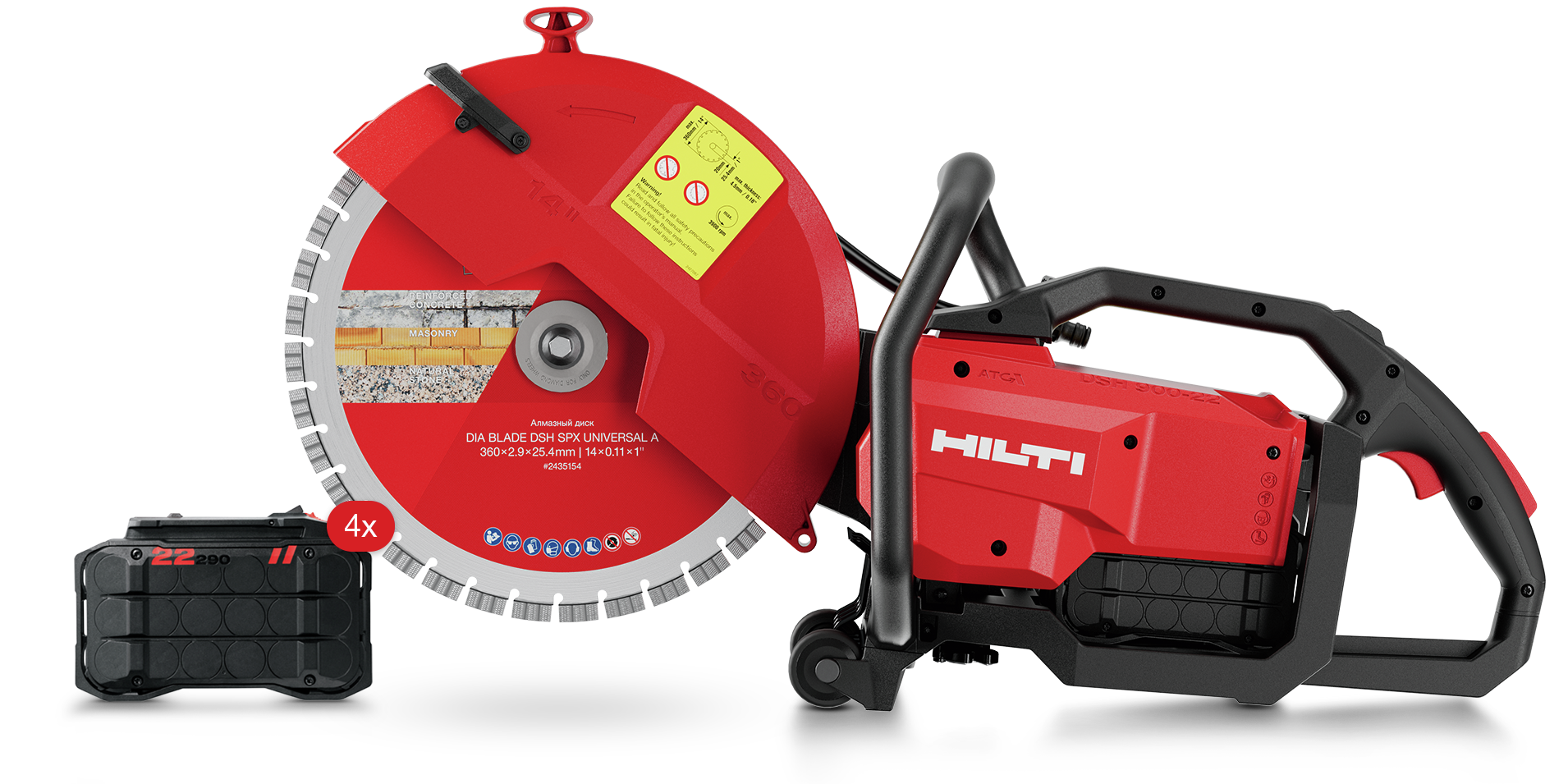Troncatrice a batteria DSH 900-22 ATC. I valori indicati si basano sull’uso di 2×2 batterie Nuron B 22-290 e disco universale SPX A da 360 mm. Le condizioni di cantiere, come temperatura, umidità, livelli di polvere e materiali lavorati, possono influire significativamente sulla quantità massima di lavoro eseguibile con una singola carica.