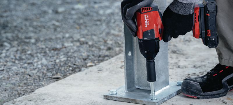 - Fissaggio di ancoraggi HUS nel calcestruzzo, ad esempio per piastre di base, puntelli per casseforme, ringhiere e impianti provvisori (diametro 10-14 mm)