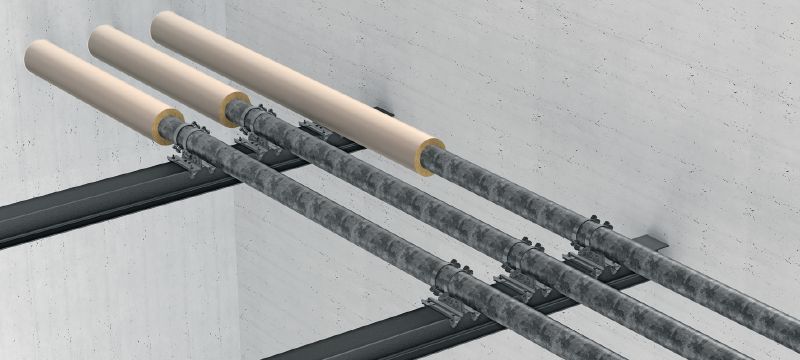 - Befestigung von MP-PS Rohrschuhen als Festpunkt an Stahlträgern